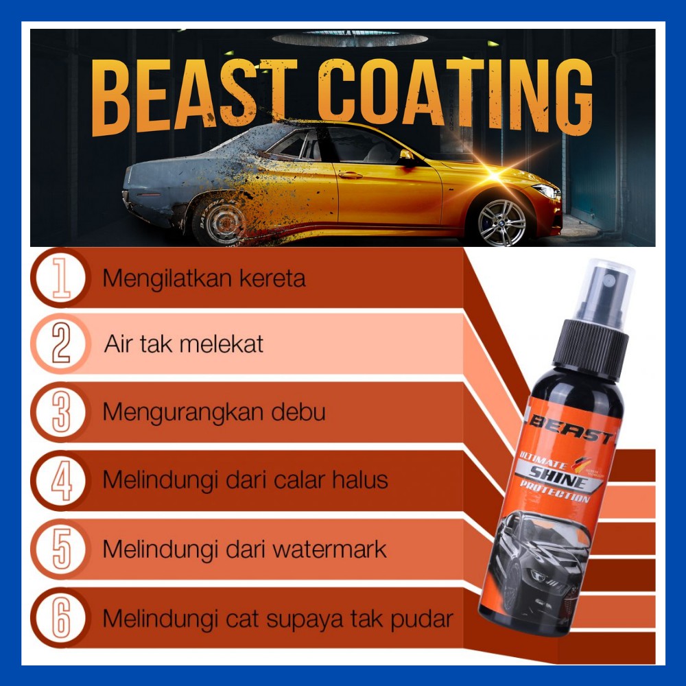 Beast coating adalah produk eklusif yang diperbuat daripada silica dioxide, iaitu bahan yang mempunyai sifat khas untuk mencegah kotoran dan memberikan efek 'kilauan'.